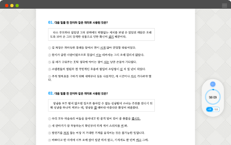 다양한 출제 영역별로 상대적,