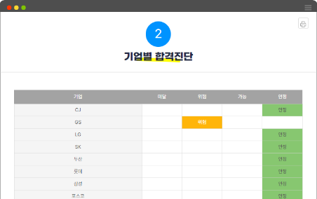 기업별 합격예측 결과표 제공